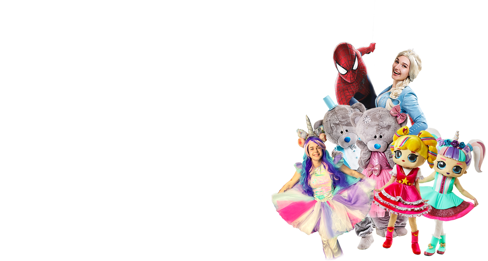 У нас молодая команда Аниматоров от 18 до 24 лет. Вы не встретите у нас пузатого дядечку человека паука или морщинистую тетечку принцессу. Мы уважительно относимся к возрасту, но у анимации есть свои возрастные рамки.